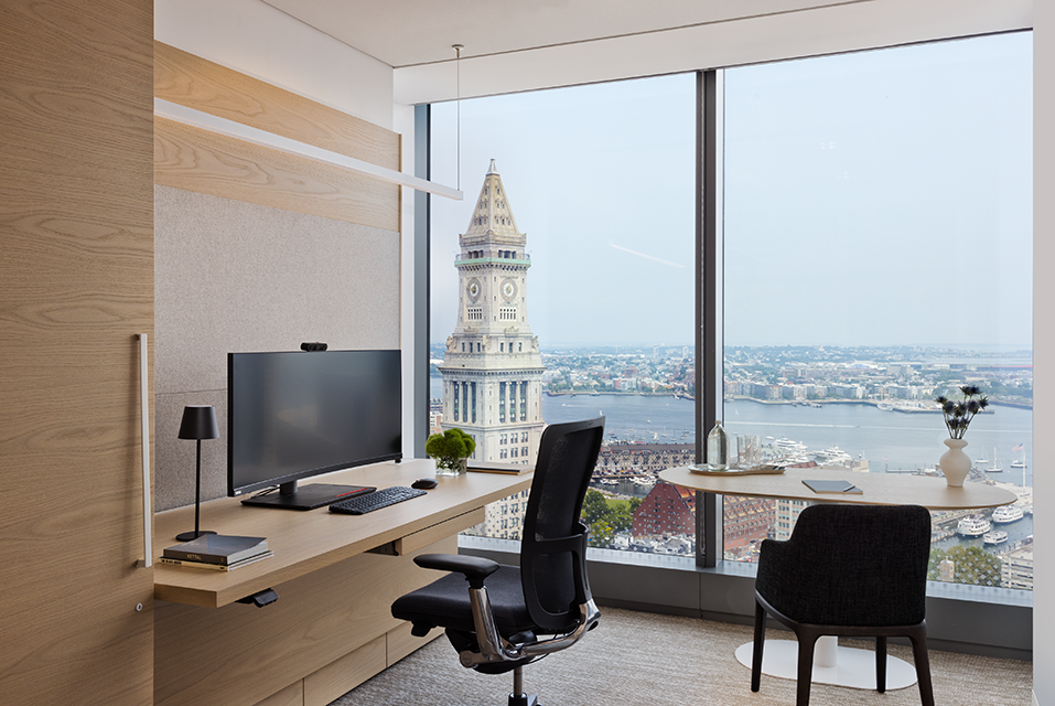 Environments at Work partnered with Adler, Pollock & Sheehan to bring their new Providence headquarters to life—delivering a sophisticated, functional, and budget-conscious workspace that reflects the prestigious law firm’s elevated brand.