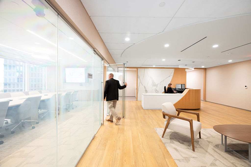 Environments at Work partnered with Adler, Pollock & Sheehan to bring their new Providence headquarters to life—delivering a sophisticated, functional, and budget-conscious workspace that reflects the prestigious law firm’s elevated brand.