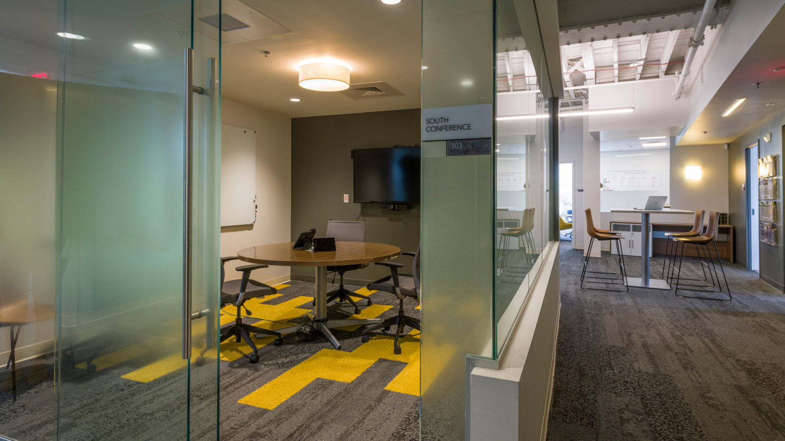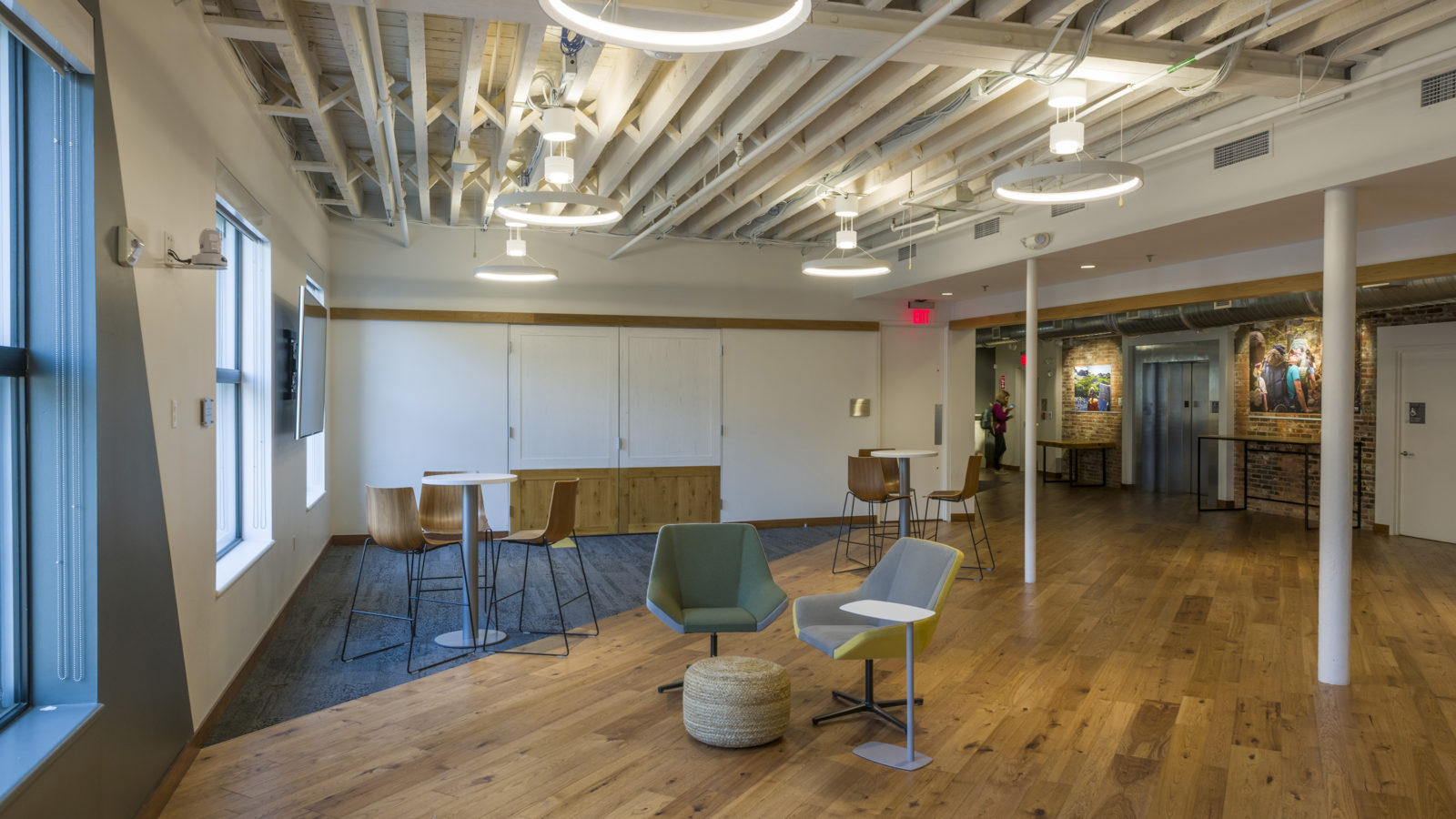 The new, four-floor space of the building, listed on the National Register of Historic Places, was completely gutted and renovated. RODE Architects oversaw the interior building renovations. The floor layout was entirely updated to optimize natural light quality, celebrate the “bones” of the building, and highlight the character of the original building construction. The original brick walls were exposed, and details were emphasized, such as the southern yellow pine wood structure.