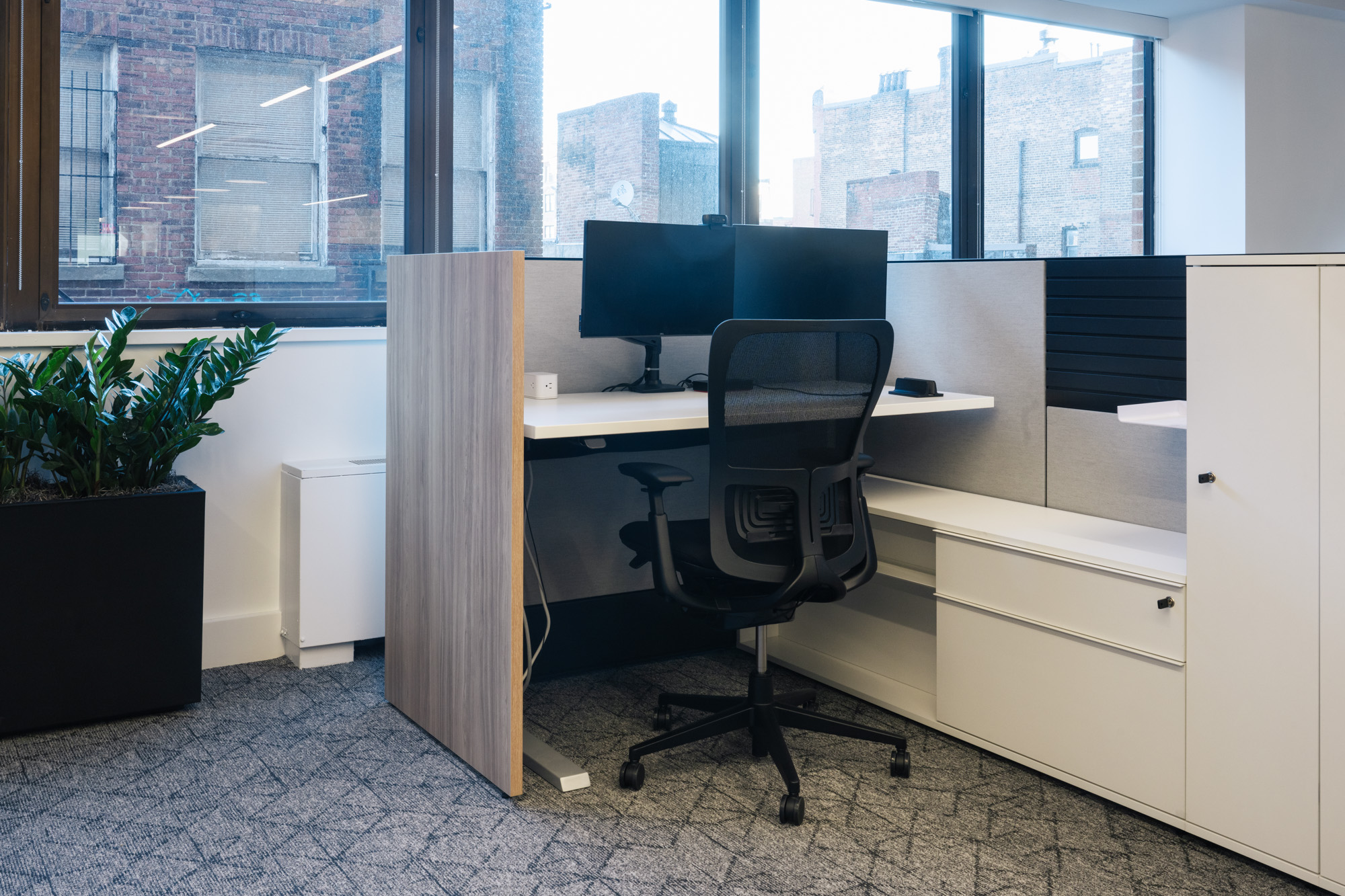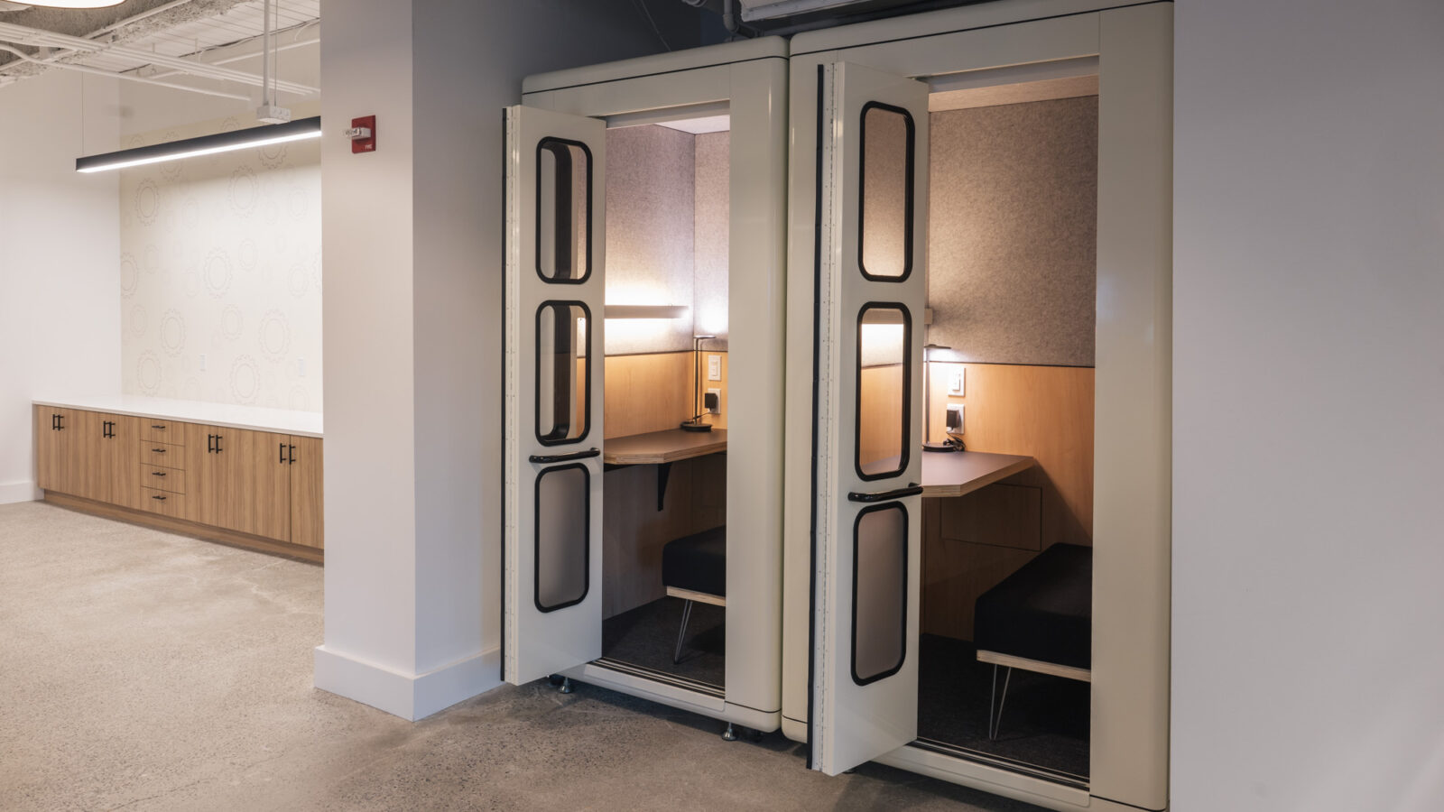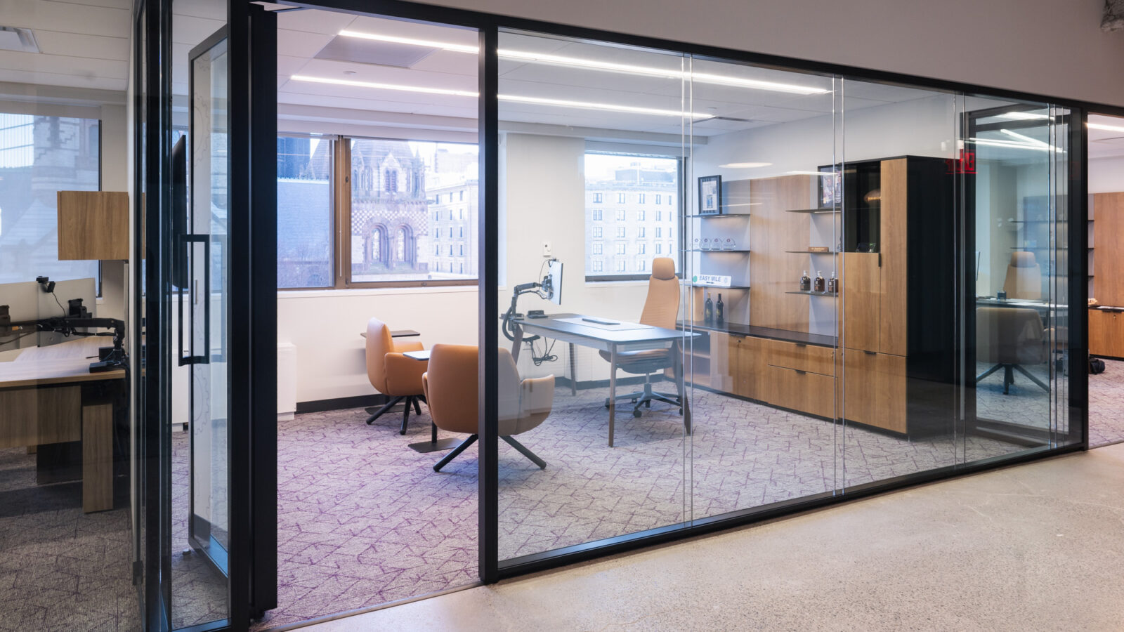 • Cohesive Look: The finishes between the millwork, workstations, and private offices were carefully matched to create a cohesive and professional aesthetic throughout the office space.