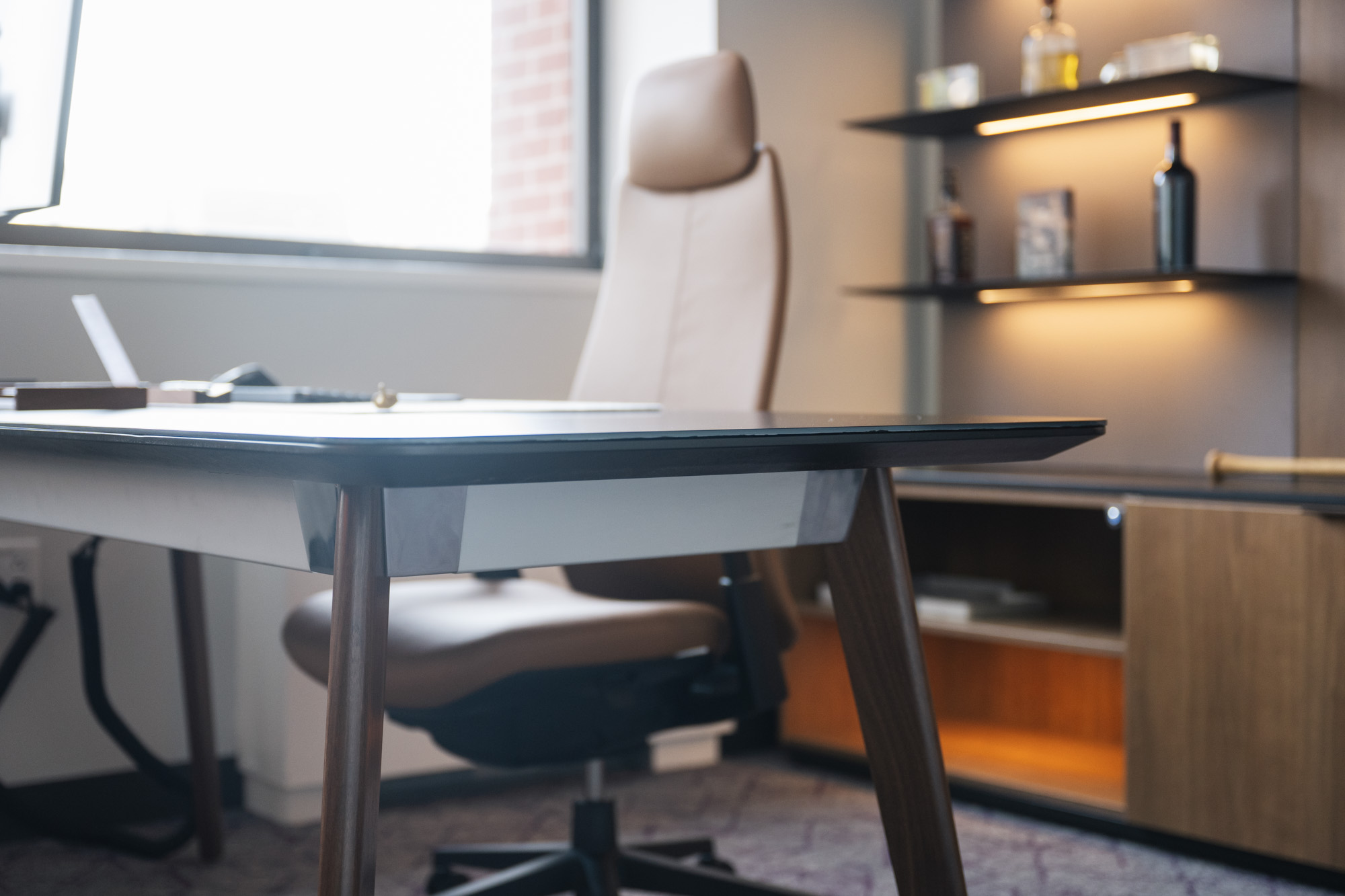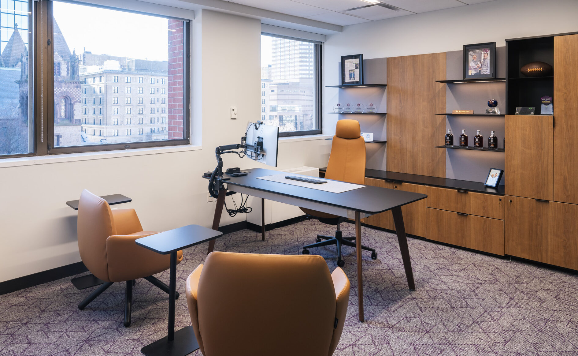 • Custom Solutions: The project embraced a significant number of custom solutions. The executive offices and boardrooms are entirely custom, from tables to work walls. Close collaboration with the client ensured that their vision was brought to life in these distinctive spaces.