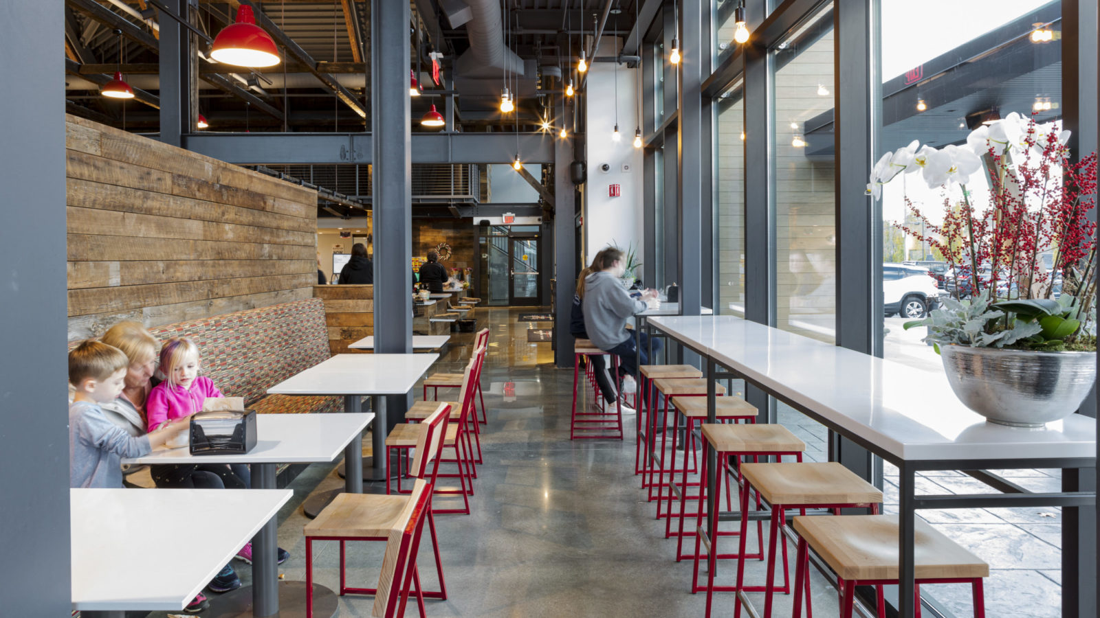 The owners acquired a post-and-beam wood structure building on the site with a desire to salvage its character. The existing structure was incorporated into the new building as an homage to the history of the site. EAW worked with the architect to select furniture that specifically complements the rustic and industrial feel of the space.